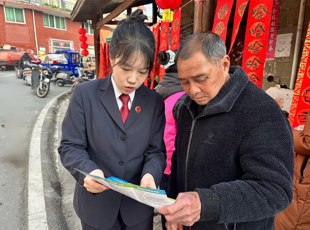 近日,建宁县检察院干警赴溪源乡开展“三下乡”普法宣传活动,向群众讲解防诈骗、邻里纠纷化解、耕地保护等与群众生活密切相关的法律知识。图为干警向群众讲解防范虚假投资理财诈骗知识。 |