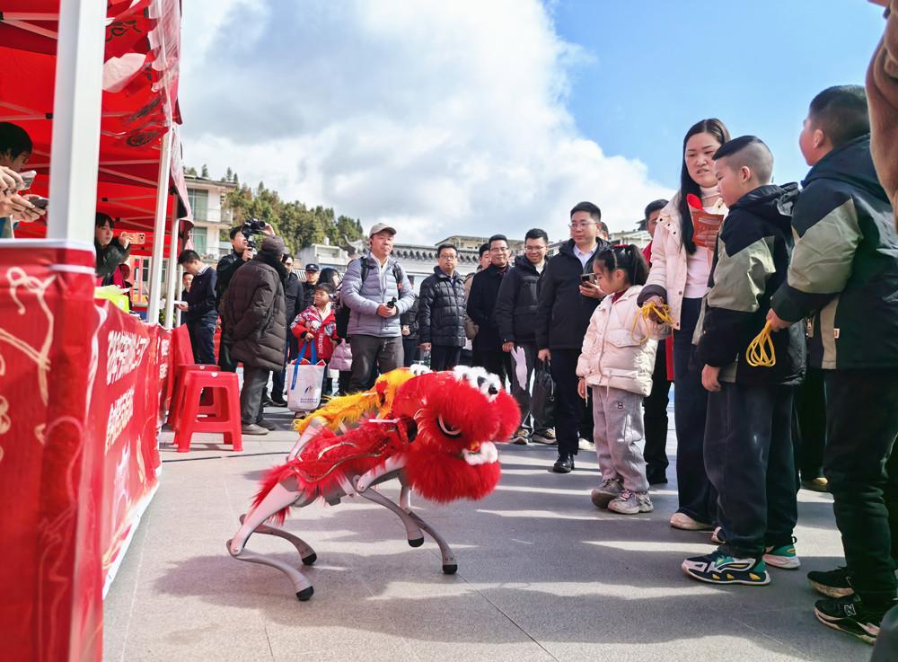 现场群众围观机器狗“舞狮”。 舞台上,文艺演出精彩纷呈,歌舞《云端之上等你来》拉开帷幕,欢快的旋律点燃了现场的热情。器乐合奏《象王行》气势磅礴,评讲戏《马匹卜驳妻》片段诙谐接地气,舞蹈《春山笠影》柔美灵动,引发全场阵阵喝彩。演员们通过生活化的演绎,将移风易俗、邻里和睦、遵纪守法等理念融入节目之中,让村民在欣赏演出的同时,潜移默化地接受法治熏陶,让文明新风扎根乡村。 另一边,医疗义诊、农技指导、非遗展示等展位前也排起长队。市卫健委医护人员免费为村民测量血压,普及健康知识;科技特派员为种植户解答花卉种植、病虫害防治等问题。一旁的福字拓印区,几个孩子踮着脚尖、握着拓印工具,在志愿者的指导下,认真地在红纸上拓印“福”字,墨香混着红纸的喜庆,成为最特别的新春礼物。与此同时,市领导走进困难群众家中,送上慰问物资和新春祝福,详细询问他们的生活状况,叮嘱他们有困难及时反映,让困难群众在寒冬里感受到党和政府的温暖。 据悉,此次87家主办联办单位为纯池镇筹集了总价值341.72万元资金、物资和项目,不仅用实实在在的帮扶为山乡百姓的新春添彩,也让乡村振兴在暖意与期盼中焕发出勃勃生机。 |