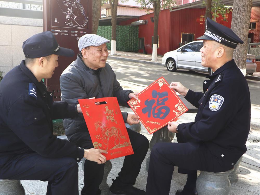 连日来,石狮市公安局宝盖派出所组织民警走进辖区,向党龄超过50岁的老党员致以崇高敬意和深切关切。图为民警将精心准备的新春福字送到老党员手中。 |