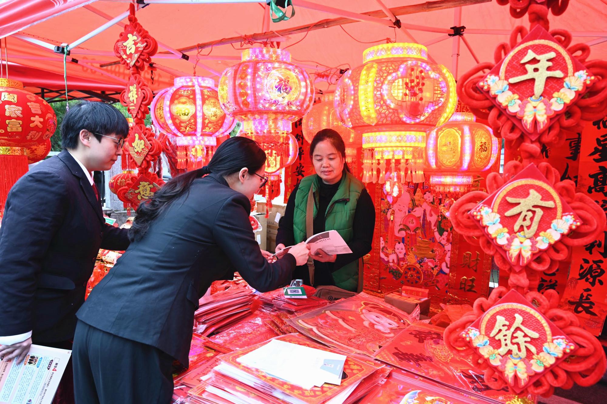 春节将至,上杭县人民法院干警前往才溪镇才溪村圩天集市开展“新春送法”普法宣传活动,为群众送上“法治年货”。图为干警向商户发放法律知识宣传册。 □江杭晏 张雨晨 摄 平静山村 走来“爱心妈妈” □本报记者 洪凌霄 通讯员 应舒怡 2月8日,午后暖阳穿透群山薄雾,照在华安县深山蜿蜒的公路上。 一辆穿行其间的小车在一段山间步道前停下,华安县检察院第一检察部主任、“爱心妈妈”服务队成员阙丽珍,与“春蕾安全员”童素美一起下车,提上沉甸甸的慰问礼包,穿过一小段山间步道来到一户农家前——这里住着阙丽珍结对观护的女高中生小林(化名)。