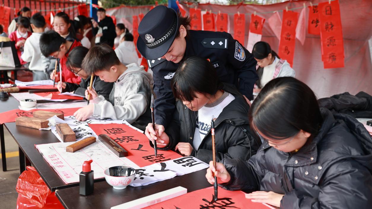 2月9日,漳州市公安局龙海分局紫泥派出所依托2026年文化科技卫生“三下乡”活动,开展普法宣传。民警通过展板解说、案例分享、发放宣传册等形式,向群众揭露“红包诈骗”“冒充亲友”等年关常见骗局。图为民警和小志愿者一起写反诈春联。 |