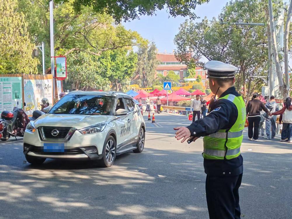 春节期间,惠安县公安局交通管理大队聚焦城区商圈、交通枢纽、景区周边及返乡要道等重点区域,常态化开展指挥疏导工作,引导车辆、行人有序通行,全力保障群众出行畅通无阻。图为民警引导车辆通行。 |