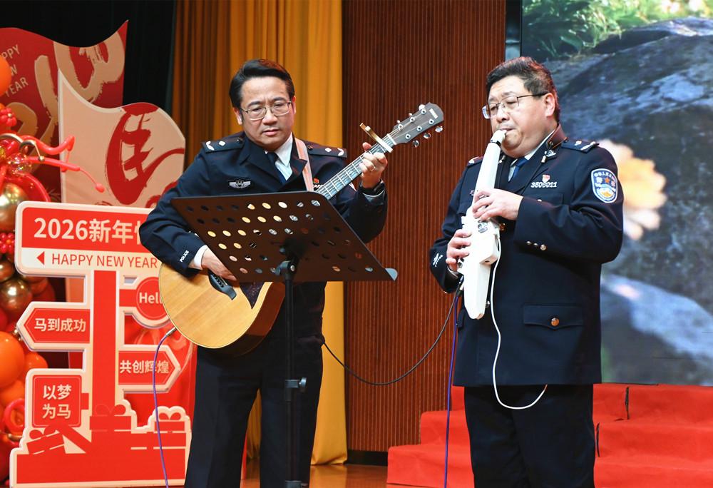 为营造欢乐祥和的节日氛围,春节前夕,省司法警察训练总队举办2026年新春团拜会。图为民警合奏《一帘幽梦》。 |