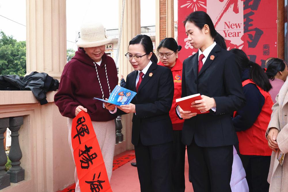 近日,东山法院组织干警走进樟塘镇南埔村“谢谢里”,参加法律、科技、文化、卫生“四下乡”活动。图为干警向群众讲解相关法律法规,并发放宣传手册。 |