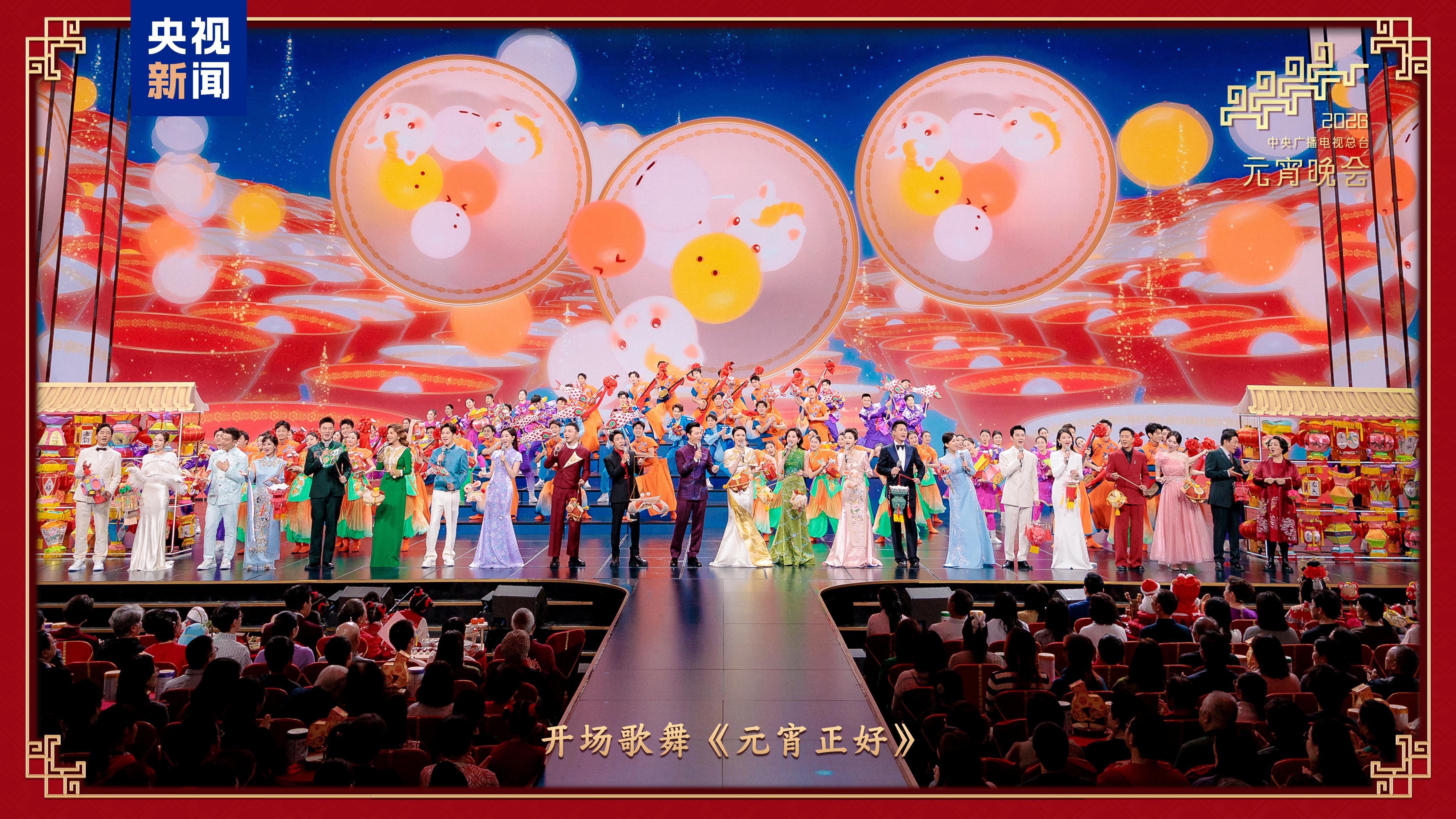 晚会在《元宵正好》的喜庆旋律中热闹开场,《千灯万户》彩扇纷飞、花伞挥舞,创编戏歌《春江花好月圆夜》与歌曲《好彩头》等送出和和美美、所愿皆圆的美好祝福。徐梦桃、王心迪、隋文静、范可新四位冬奥健儿惊喜亮相,与现场观众一起闹元宵、送祝福。在哈尔滨分会场,冰雪大世界的热闹与元宵的温情撞个满怀;义乌分会场里“世界超市”的澎湃活力扑面而来;合肥分会场尽显元宵烟火与江淮文化魅力;宜宾分会场传递出团圆欢聚的温暖喜悦。