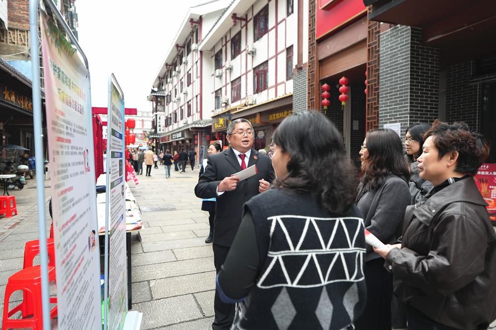 近日,尤溪县人民法院组织干警前往朱子古街,开展以“街角遇见‘她’ 学雷锋见行动”为主题的普法宣传活动。图为干警向群众发放宣传手册,讲解有关妇女权益保障等法律法规。 |