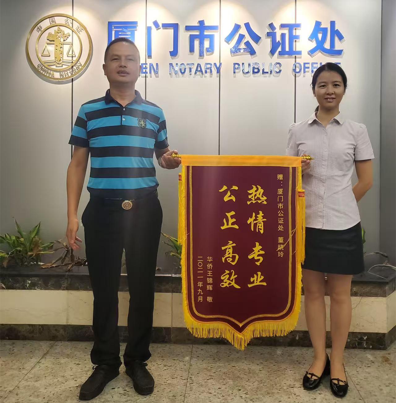 池才姗解答当事人的法律问题。 每当看到农民工兄弟拿回被拖欠已久的血汗钱时眼中的热泪,每当目睹交通事故受害者成功获得赔偿后紧握她双手的颤抖,每当望见为误入歧途的少年争取到公正判决后那一抹如释重负的微笑,池才姗说:“选择‘1+1’,是我这辈子最无悔的决定。”因为在这里,她找到了自己的使命,更深刻理解了生命的意义——以法律之光,照亮公平之路;尽微薄之力,为建设法治中国添砖加瓦。 9年间,池才姗累计办理各类援助案件近500件,为群众避免和挽回经济损失上千万元;为超过600名刑事被告及被害人提供刑事辩护和法律帮助;解答来访、来电法律咨询数千人次,用坚守与奉献,诠释新时代女性司法行政工作者的责任与担当。 董晓玲: 十年坚守 方寸窗口显温情 董晓玲,厦门市公证处三级公证员,厦门市公证协会维权与惩戒委员会委员,两次荣获“省优秀公证员”称号。 董晓玲于2014年从事公证工作,10年来,她始终坚守值班窗口一线,耐心为市民解难事、办实事、做好事。 “同志,我想办理亲属关系公证,年纪大了,往返厦门和成都实在不便……”一天清晨,董晓玲在工作中接到黄先生的求助电话。黄先生原居住地在成都,现在厦门定居,因部分佐证材料不全,且年事已高、行动不便,无法亲自开具相关证明资料,办证难度较大。董晓玲通过电话反复细致问询,用微信视频逐一对接材料、核实信息,同时多次联系两地相关单位补充相关证明材料,全程耐心指导黄先生操作,最终帮他解决了公证难题。