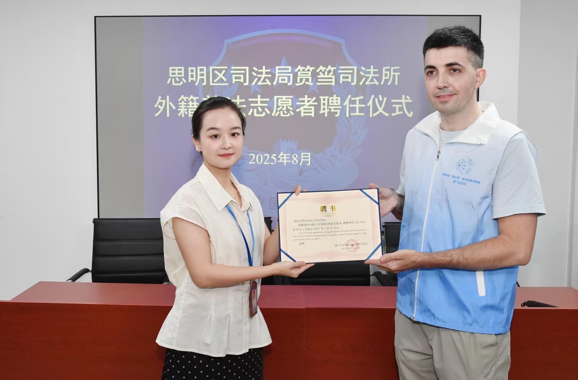 廖欣获评厦门市先进工作者。 人工智能产业促进条例被列入2026年立法计划。日常工作中,只要看到人工智能产业相关政策、有价值的行业新闻,廖欣都会第一时间收藏学习、深入钻研。法规规章的审查与修改涉及各个领域,要求她必须在短短几个月内快速切换一个全新“赛道”,“带着问题做立法”,早已成为她的工作常态。 2025年,在修订《厦门经济特区建筑条例》时,廖欣连续3天到厦门市住建局“驻点办公”,向各个处室负责人请教,逐条明晰法条的具体内涵与立法初衷,“吃”透这本建筑领域的“法律红宝书”。 廖欣明白,立法是一项研究性极强的工作,既要求立法人能沉下心、坐得住,以宏观思维审视全局;又要求立法人脚下沾泥土、心中有群众,脚踏实地为民立法。 今年1月1日,《厦门经济特区市场准营承诺即入制规定》正式施行。每一条规定条文背后,都凝聚着立法人充分调研与反复论证的心血。廖欣在调研中发现,部分经营主体在实践中并不愿意选择“准营承诺即入”模式。“他们希望通过审批部门的严格审核,降低后续经营风险。”廖欣表示,立法既要推进改革,更要尊重行政相对人的意愿,给予他们自由选择的权利。于是,“经营主体可以自主选择适用承诺即入制或者一般程序办理”便加进了条文当中。 牵头制定、修改法规、规章共59部,廖欣始终把“多站在老百姓和市场主体的角度想一想、看一看”作为行动准则,将建设全国统一大市场、维护公平竞争的目标,化为思想钢印,刻在心里、落在实处。 陈文霞: 涉外繁花 架起中外连心桥 陈文霞,厦门市思明区司法局筼筜司法所所长,创新打造基层涉外法治品牌,做法被国家级期刊《司法所工作》、司法部公众号刊发推广。 “法治是最好的营商环境,也是外籍人士在厦门安居乐业的‘定心丸’。”这是陈文霞的工作信条。作为全市最年轻的司法所所长,陈文霞再添实绩——她紧扣辖区外籍人士众多的特点,创新构建基层涉外普法服务模式,成为涉外法治战线上一朵绚丽的繁花。