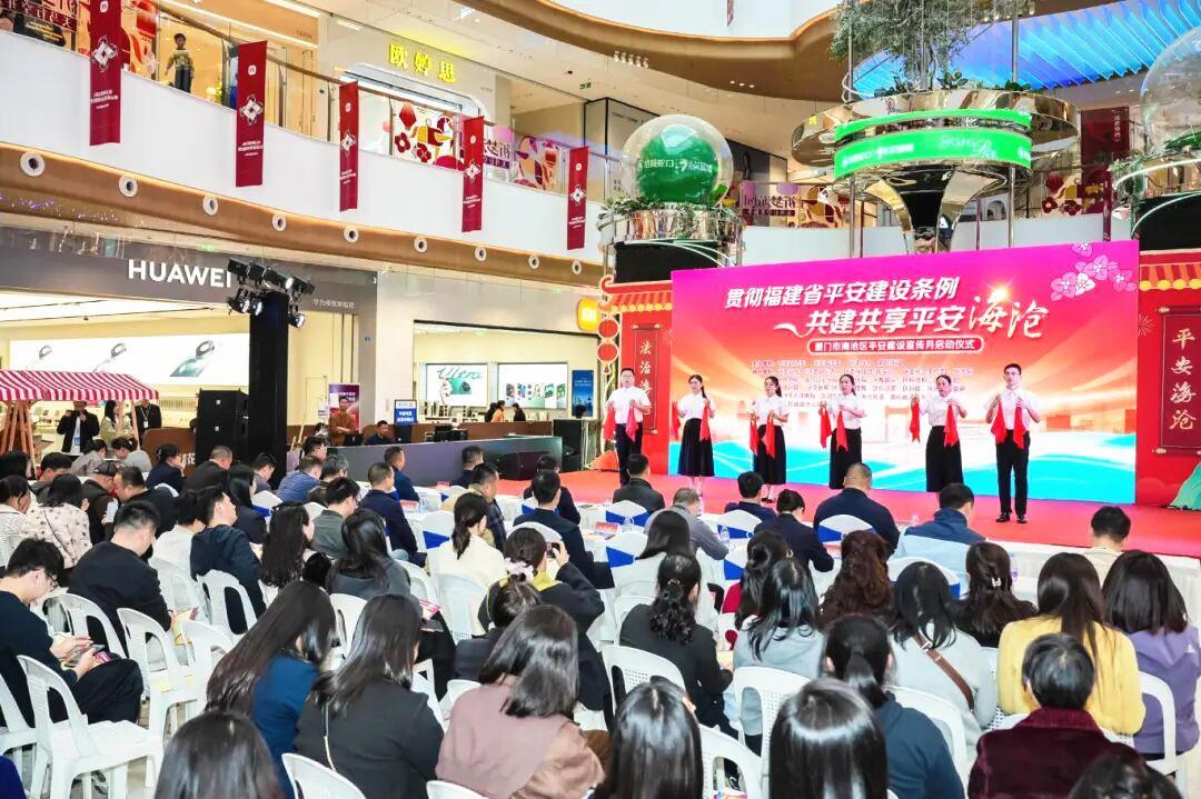本报讯 近日,厦门市海沧区2026年平安建设宣传月启动仪式在新阳街道招商花园城举行。活动通过文艺展演、互动问答、平安集市等形式,向群众传递平安理念。 启动仪式上公布的一组数据引人注目:2025年,海沧区刑事警情数降至近十年最低,群众安全感率达99.5%,综治中心知晓率位居全市第一,平安建设考评获评“优秀”等次。