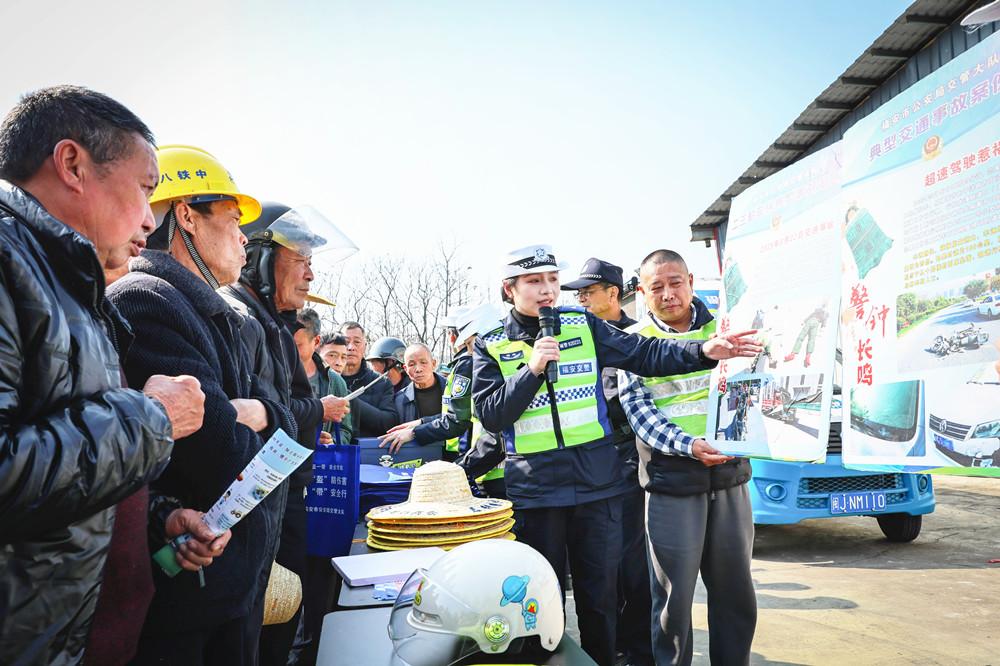 近日,福安市道安办牵头在社口镇开展三轮车免费安全“义诊”活动,福安市公安局交管大队借机开展交通安全宣传。图为民警向村民解析交通事故案例。 |