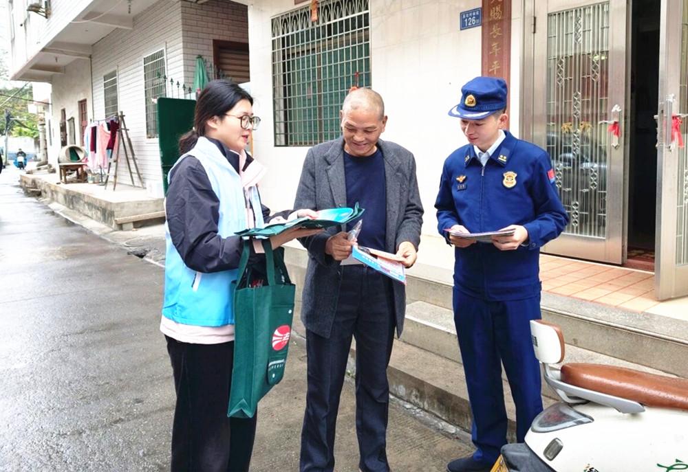 近日,漳州市龙海区司法局联合区消防救援局到高坑村开展普法宣讲活动,并同步进行消防安全宣传和隐患排查。图为工作人员现场为群众解答法律疑问。 |
