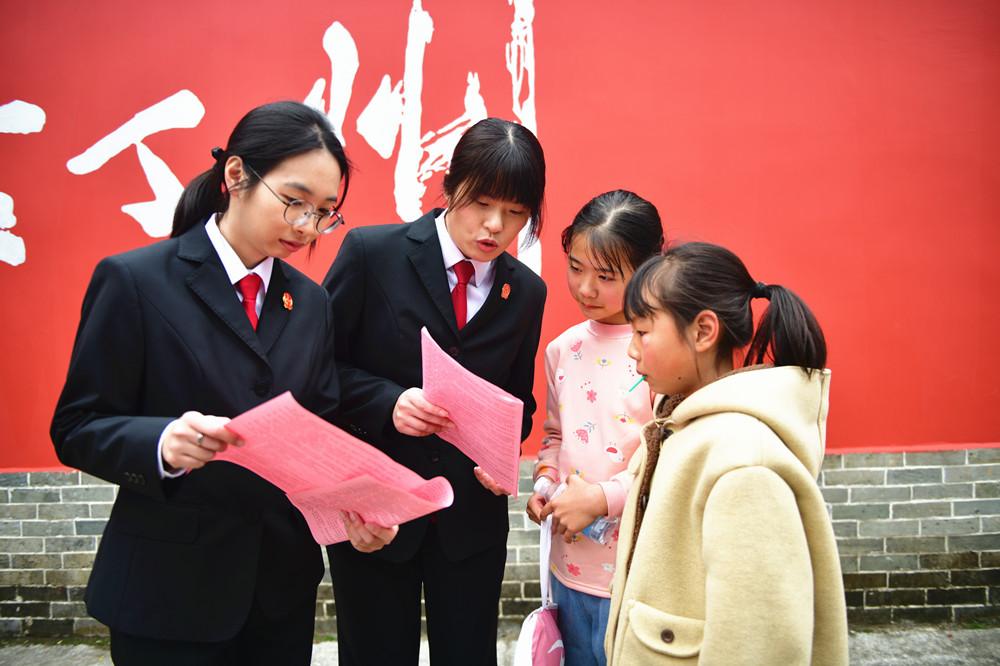 近日,长汀法院干警在三元阁广场设立咨询台,为群众提供消费维权法律咨询。图为干警向小朋友发放普法宣传手册,并讲解相关法律知识。 |