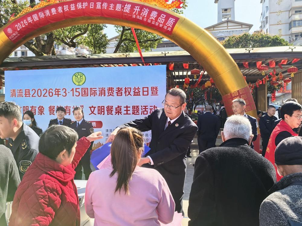 近日,清流县检察院联合县市场监督管理局、法院等开展消费者权益保护主题普法宣传活动。图为检察院干警向群众发放活动宣传资料。 |