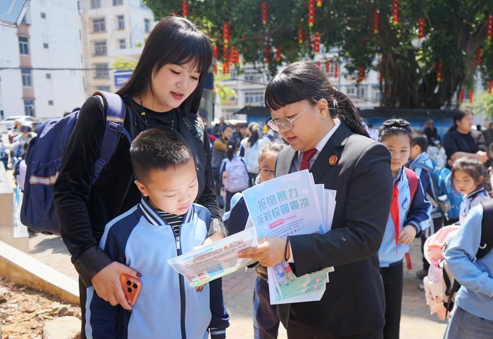 近日,华安县人民法院组织干警走进该县第二实验小学,利用家长等待孩子的碎片时间,以案释法讲解防范电信网络诈骗、反对校园欺凌等法律知识。 |