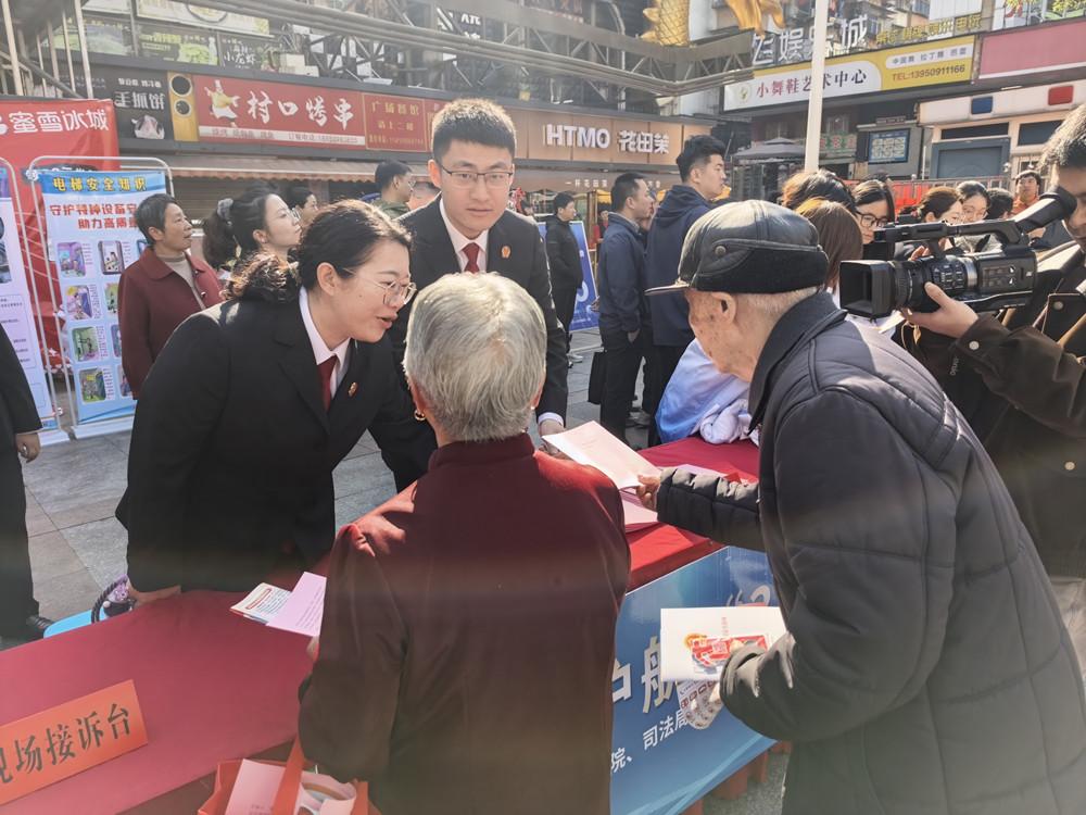 近日,三明市中级人民法院组织干警前往三元区腾飞广场,围绕消费者权益保护主题开展普法宣传活动。图为法院干警向群众讲解常见消费者维权渠道。 |