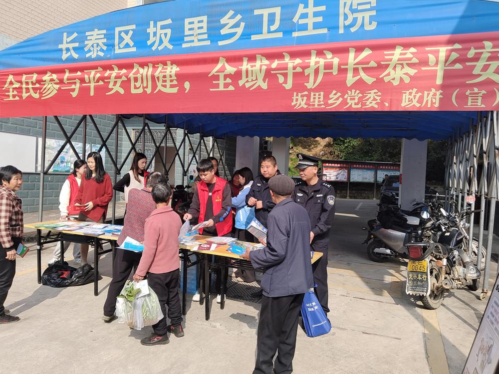 3月17日,漳州市公安局长泰分局坂里派出所联合乡政府在坂里乡卫生院门口开展法治宣传活动。现场,民警辅警以案释法,引导群众遵守交通规则、防范刷单等诈骗套路。 |
