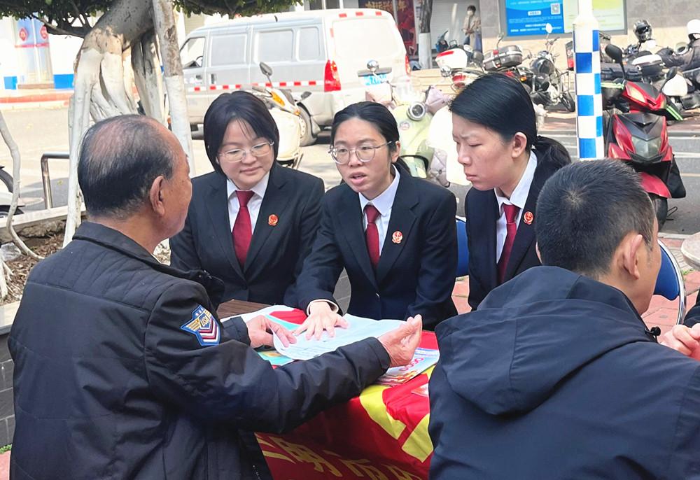 近日,三明市中级人民法院组织干警到三元区青山社区开展普法宣传活动。图为法院干警向群众分发法治宣传手册,并解答法律疑问。 |