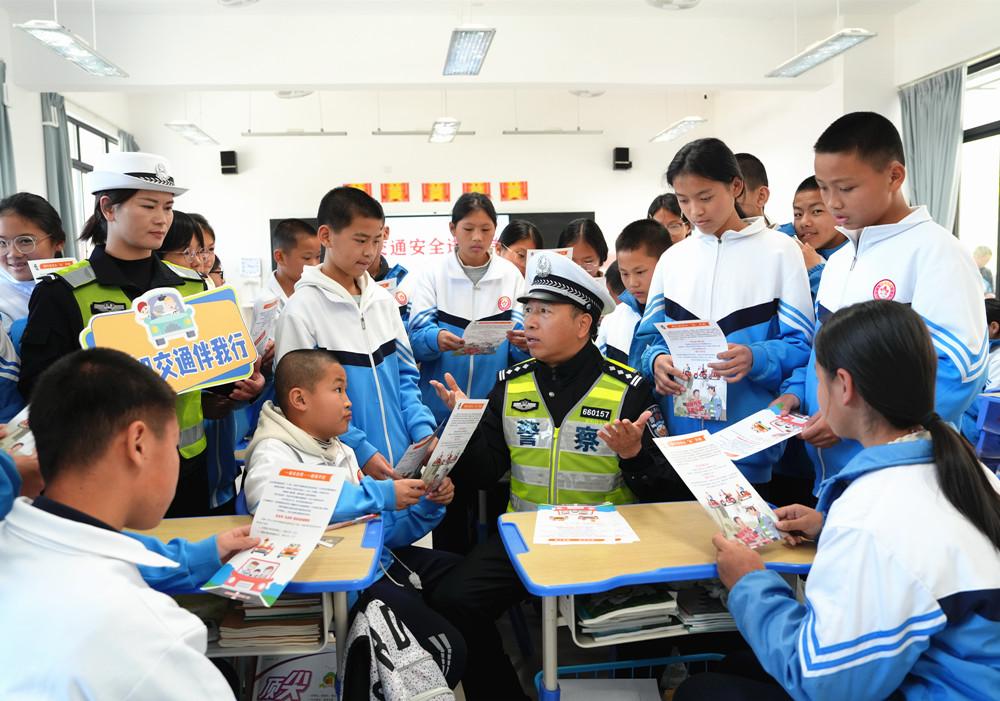 近日,大田县公安局交通管理大队组织宣传小分队走进大田辖区中小学校,开展“知危险 会避险”“一盔一带”主题的交通安全宣传活动。图为民警通过主题班会课的形式,讲解驾乘电动自行车不佩戴安全头盔等交通违法行为带来的危害。 |