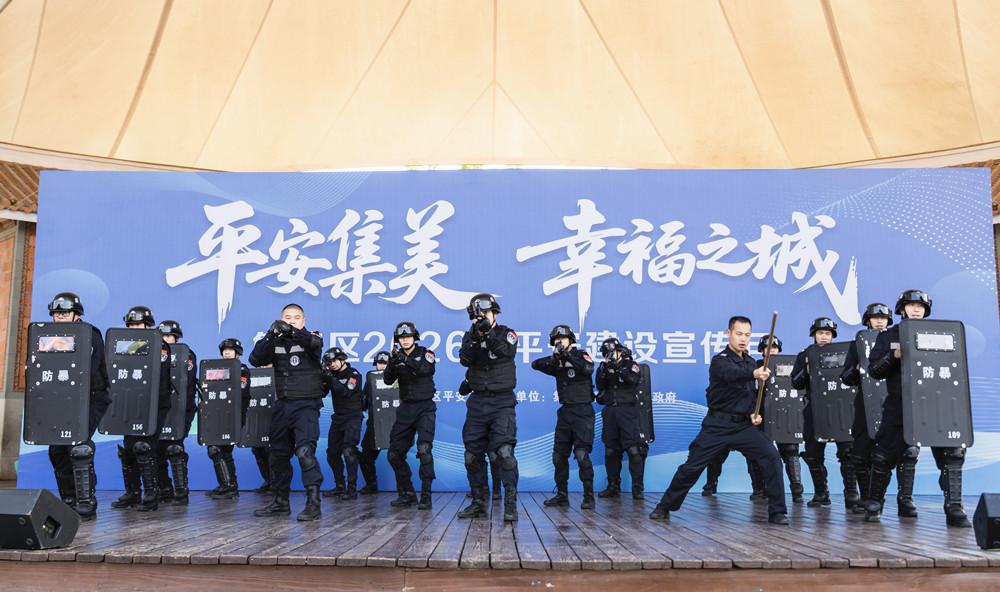 3月25日,厦门市集美区平安办在灌口镇风景湖广场举办平安建设宣传月主题活动,通过文艺表演、互动问答、集中宣传等形式,把平安知识送到群众身边。图为民警进行队形展示。 |