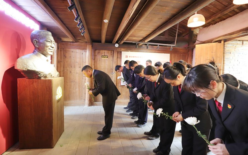 近日,政和县人民法院机关党委组织党员干警赴政和县石圳村廖俊波同志先进事迹馆,开展“深学廖俊波 正确树政绩”主题党日活动。图为党员干警向廖俊波铜像鞠躬致敬、献上鲜花。 |