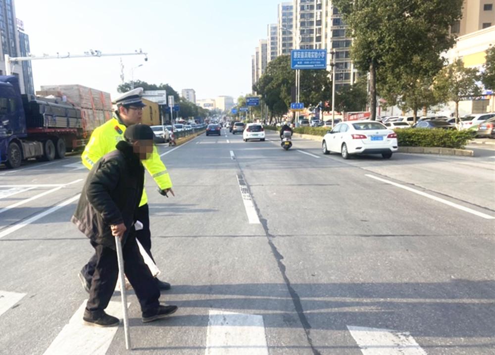 近日,惠安县公安局交通管理大队螺城片区中队民警在国道324线祥盈一号广场路口执勤时,发现一名行动不便的老人在过马路,于是示意过往车辆减速避让,并快步上前搀扶老人,直至老人安全过街。 |