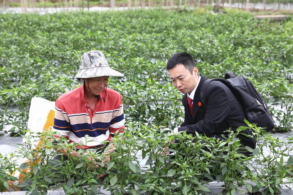 近日,永安法院小陶法庭法官深入田间地头,开展“法护永安·送法下乡护春耕”普法宣传活动。图为法官向当地农户了解春耕情况,并发放普法宣传单。 |