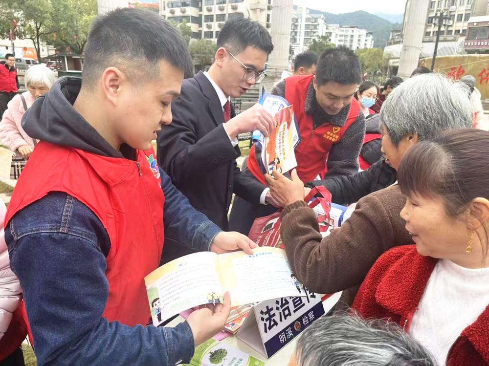 近日,明溪县检察院在雪峰镇欧侨广场开展普法宣传志愿服务活动,并提供法律咨询服务。图为检察干警用通俗易懂的语言向群众普及法律知识。 |