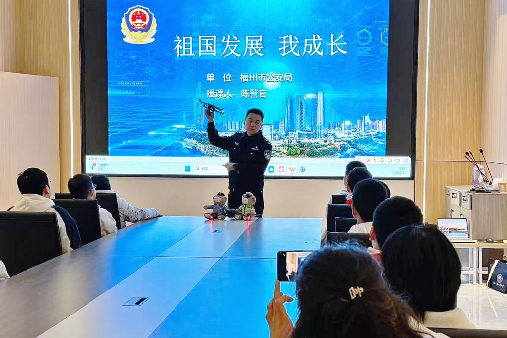 近日,福州市公安局洋中派出所民警走进福建福莱航空科技有限公司,为到此参观的小朋友开展警用无人机知识讲座。图为民警结合警用无人机实战应用讲解飞行原理。 |
