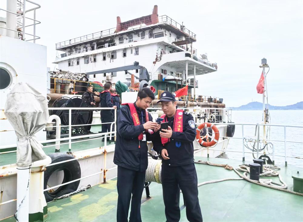 3月27日,福鼎市公安局海岸大队联合海洋与渔业局、海事处、海警工作站等单位,对闽浙交界、沙埕湾、嵛山岛等重点海域开展全方位巡查整治,重点查处涉海走私贩私、偷私渡、非法捕捞等违法犯罪行为。图为民警通过船讯网App察看被检查船舶的行驶轨迹。 |