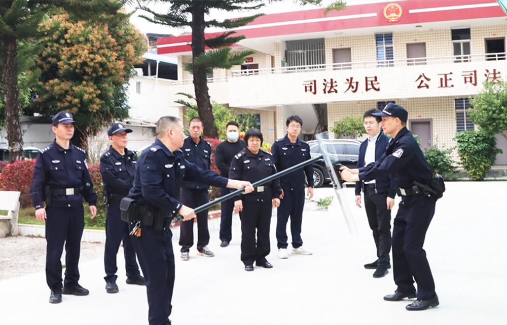 近日,泉州市洛江区人民法院司法警察大队举办突发情况处置实战演练,模拟处置现场冲突、强行冲闯等场景,以实战标准打磨执法技能。图为演练现场。 |