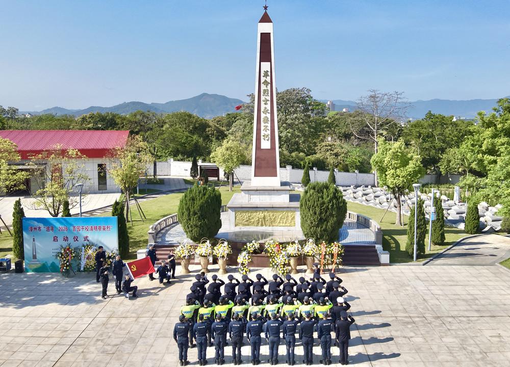 4月1日,漳州市公安局高新区分局组织50余名民警辅警走进漳州烈士陵园开展清明祭英烈主题活动。图为民警辅警代表重温入党誓词。 |