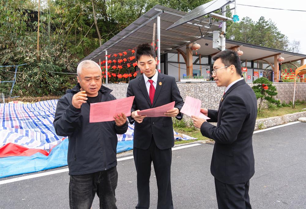 近日,武平法院联合县检察院、县公安局、县林业局,在永平镇帽村村农贸市场开展防灭火宣传活动。图为干警向群众讲解相关法律知识。 |