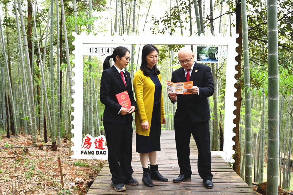 近日,建瓯市人民法院法官走进千竹园开展生态保护宣传活动。活动中,法官用通俗易懂的语言解读法条要点,向游客普及森林保护、水资源保护、绿色出游、生态消费等相关条款。 |
