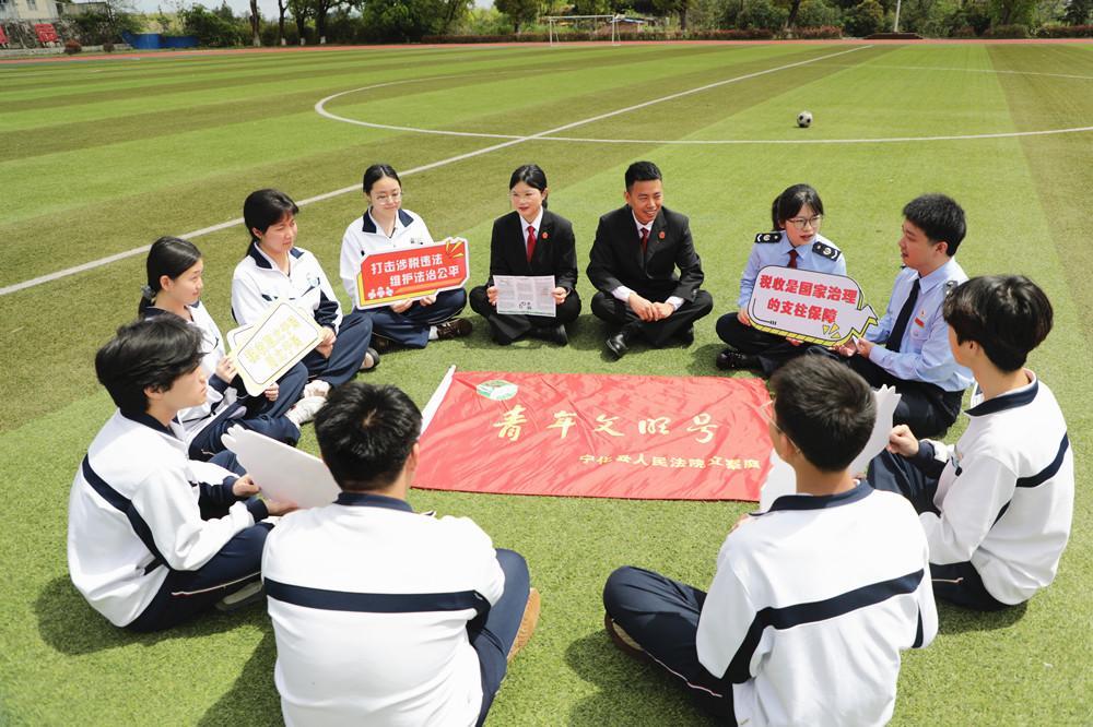 近日,宁化法院联合宁化县税务局走进三明工贸学校,以“税收·法治·公平”为主题,为即将毕业的学生送上入职前法治第一课。图为法院干警、税务局工作人员向学生讲解相关法律知识。 |