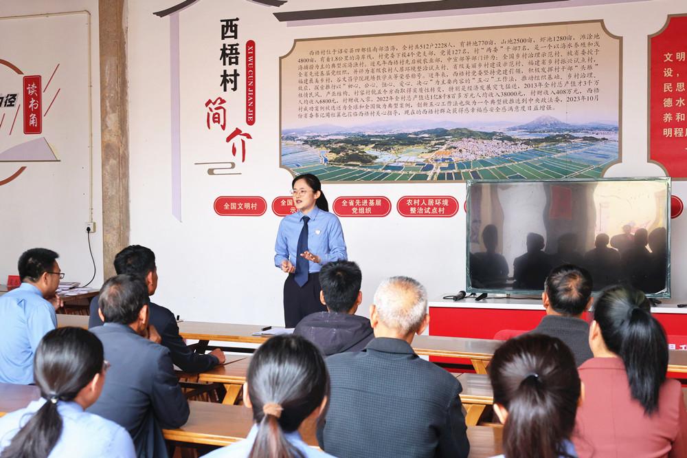 近日,诏安县检察院组织干警深入西梧村开展森林防火普法宣传活动。图为干警向村民宣传防火安全知识。 |