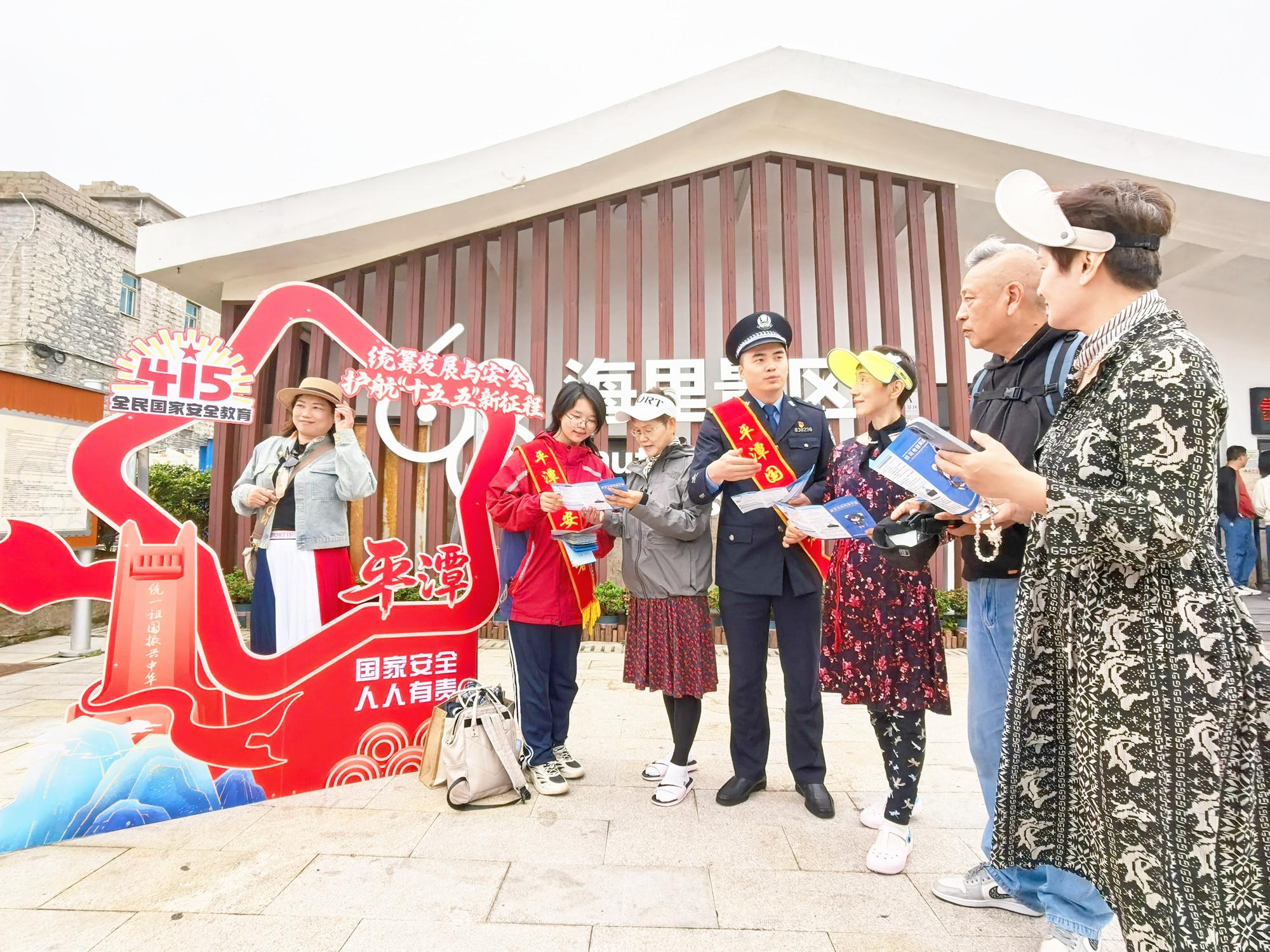 为迎接“4·15”全民国家安全教育日,日前,由平潭综合实验区党工委政法和社会工作部联合实验区国安局公开招募的首批“国安使者”来到68海里景区,向游客普及国家安全教育相关法律知识。图为活动现场。 |
