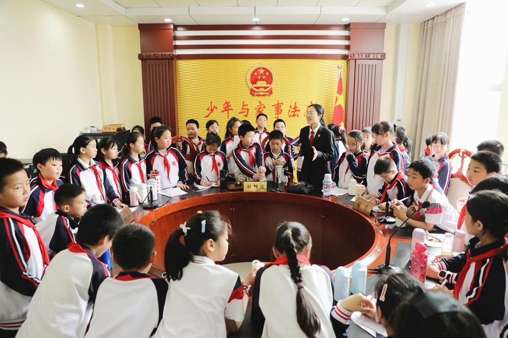 近日,宁化县人民法院开展“法院开放日”活动,邀请县实验小学50多名学生走进法院,“零距离”了解日常审判工作,感受司法氛围。图为在少年与家事审判庭,法院干警向学生介绍“圆桌法庭”的设计理念。 |