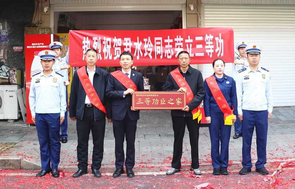 近日,政和县消防救援局开展“送奖到家”活动。送奖队伍带着绶带及牌匾,先后走进两位消防人员的家中,为荣立三等功的两位消防人员及家属披上荣誉绶带,并送上“三等功臣之家”牌匾,并希望两位消防人员要以此次立功为新起点,始终保持昂扬向上的奋斗姿态,再创佳绩。 |