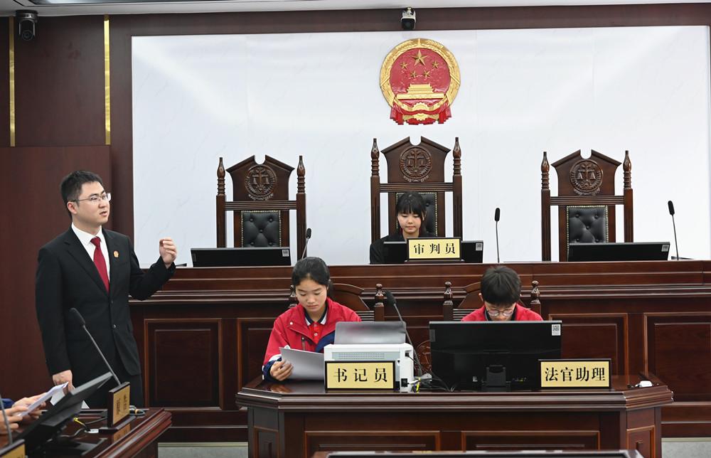 近日,上杭县人民法院组织开展以“法润青春 护航成长”为主题的法庭开放日活动。其间,古田中学50余名学生走进古田法庭,通过模拟法庭、普法课堂、参观共和国法治摇篮展览馆等方式,感受司法威严、学习法律知识。图为法院干警在模拟法庭活动中向学生介绍审判法庭功能。 |