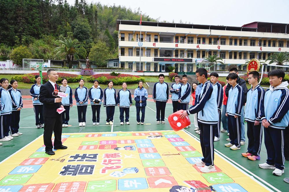 近日,建瓯市人民法院法官走进辖区中学,以“普法飞行棋”为载体,开展禁毒反诈主题法治宣讲。活动中,学生掷骰答题,法官结合典型案例,用通俗易懂的语言讲解毒品危害、电信诈骗防范等法律知识,引导学生知法守法。图为法官与学生一起玩转普法飞行棋。 |