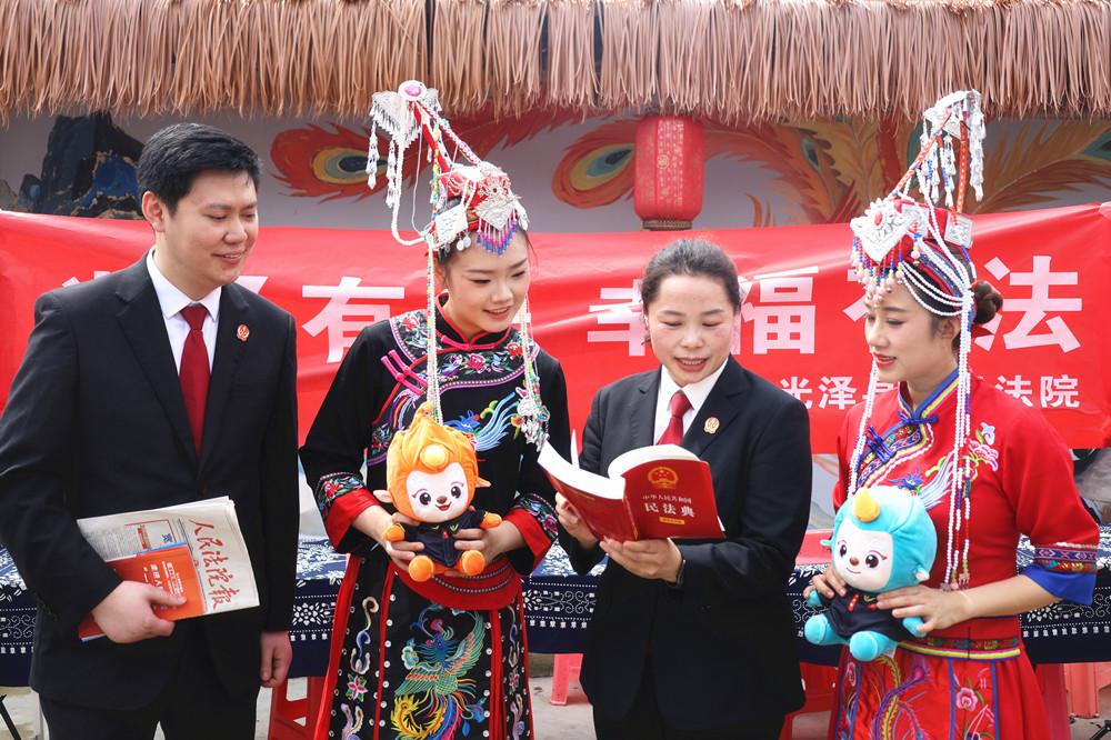 近日,光泽县人民法院干警走进中国少数民族特色村寨——光泽县寨里镇浆源村, 借助当地举办“三月三”畲族文化节的契机,将普法宣传融入传统节庆,为乡村振兴注入法治动能。 |