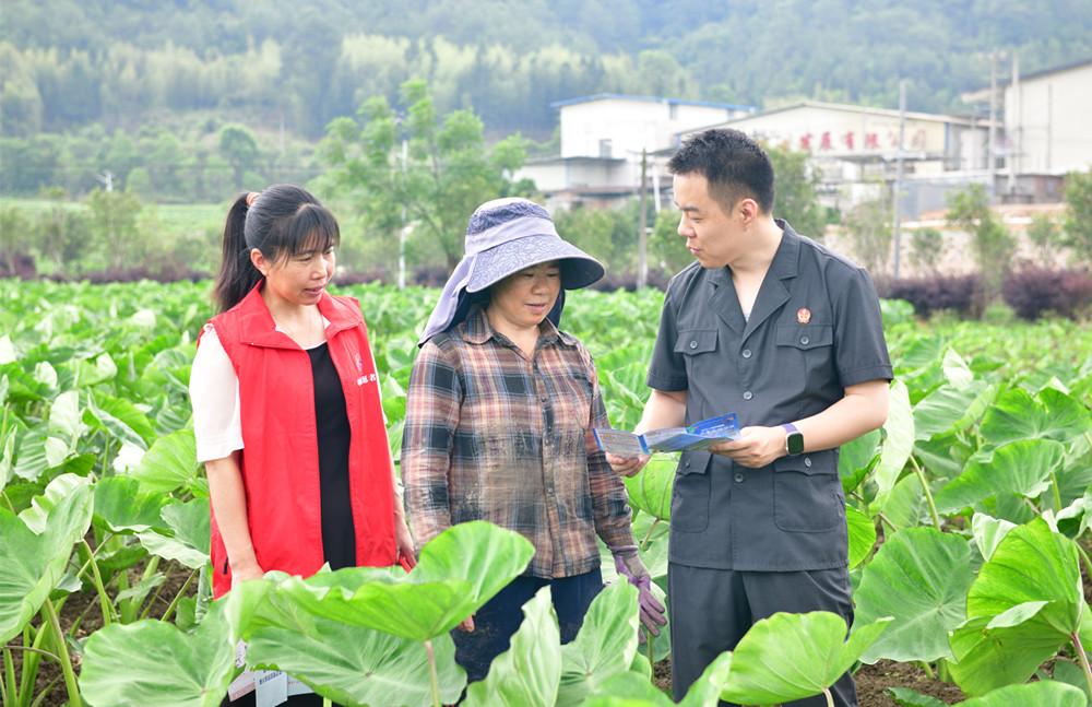 近日,长汀县人民法院组织干警深入辖区,联合当地乡镇干部走进田间地头,开展普法宣传活动。图为干警现场解答群众法律咨询。 |