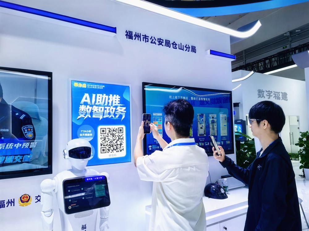本报讯 4月28日,第九届数字中国建设峰会现场体验区在福州正式开放。在福州市公安局仓山分局金山派出所展区,科技带来的便民服务触手可及。